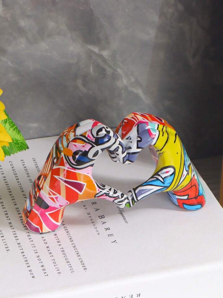 Modern Graffiti Hand Heart Sculpture Abstract Art Resin Love Decor Gift