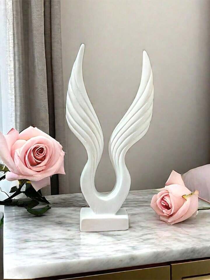 White Angel Wings Sculpture Modern Resin Abstract Art Home Decor Gift